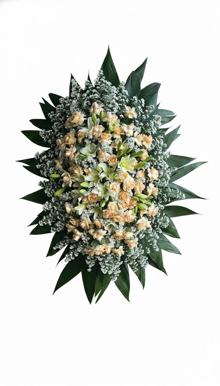Composição: Rosas champanhe e brancas. Lírios, aricana e áster.