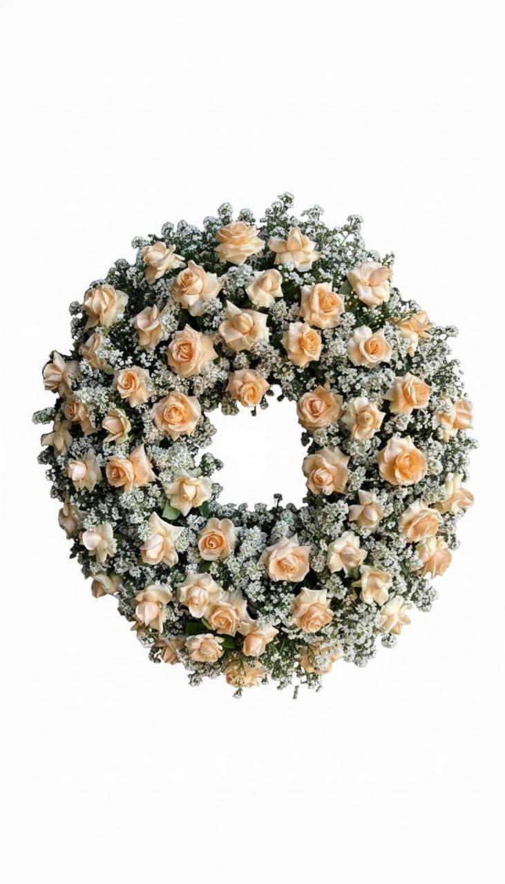 Rosas champanhe e astromélias, áster e mix de folhagens.